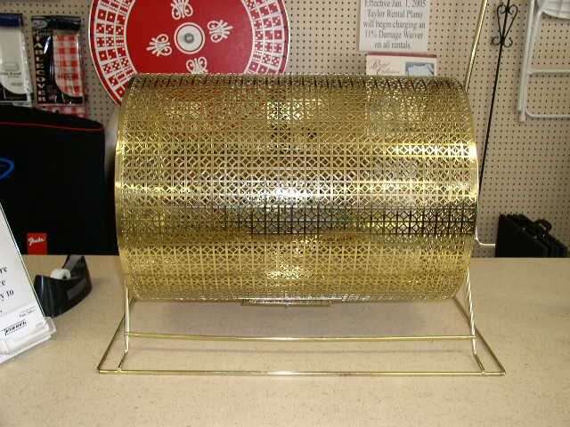 Brass raffle drum. 21″W, 15″D, 20″H. Approx. 7500 ticket capacity.
