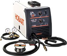 Wire feed welder uses flux core wire so it requires no shielding gas. Includes rolling cart. Output range of 25 – 140 amps. 115V 20A. Wire available for $35 per roll.